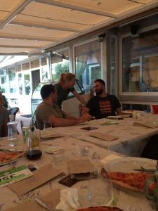 Aztán jött a fordulat. Felkészültem életem leghosszabb 16,6km-ére, 2 órát saccoltam rá. Ezzel szemben benyomtam egy RedBullt, kinőttek a szárnyaim és olyan tempót mentem, hogy magam is meglepődtem rajta. Ráadásul érzésre is fasza volt, sorra daráltam be az embereket, felemelő élmény volt. A végére azért kifejezetten elfáradtam, de már csak alig 19km volt hátra két részletben, kezdtem azt érezni, hogy meglesz. A csapat továbbra is parádésan üzemelt, egyszerűen mindenki tette a dolgát! Fonyódon a yachtklubban sikerült lezuhanyoznom, (amit ezúton is köszönök nekik) nagyot lendített a komfortérzetemen.
