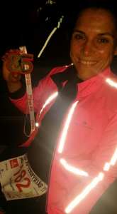 A versenyt 6x15km-re osztottam és abban gondolkodtam mindig, a 15-ök legyenek meg. Az 1., 2., 15-km volt a legnehezebb. Koncentrálni, jelen lenni és nem a melón agyalni, nem azon, hogy mi lesz, ha nem bírom, mi lesz ha … mi lesz ha … Kb 45-ig mantráztam, hogy “itt és most, hus, hus”. 45-től arra koncentráltam, hogy sötétedésig érjek el minél messzebb, mert utána ki tudja hogy hogy fogok tudni menni. Emelkedőn erőltetetten mentem, lefelé, vízszintesben futottam. Mikor besötétedett egyedül mentem, egy darabig ment is (persze voltak részek, ahol keresgéltem), de volt egy pont ahol nagyon nem éreztem magam biztonságban így bevártam a mögöttem jövőket. Hihetetlen szerencsémre egy tizenkettedszerre menő nagyon nagy tapasztalatú futónővel mehettem végig az utolsó kb 20 km. Sokat beszélgettünk, de haladtunk közben, csak úgy repült az idő és már ott is volt Kriszti 77 km-nél. Megvolt a köves völgy is esés nélkül, beértünk Budaörsre, még volt pár perc, hogy 12 órán belül bent legyek, így meghúztam a végét és meglett :-).SPAR Maraton beszámoló – Ficzere Juli