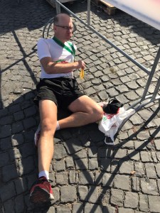 Pár perccel később Gabi lába előtt heveredtem le, a nagyszínpad mellett. Fizikailag meg átvitt értelemben is. Maratonista lettél – írta nagylelkűen pont két éve, amikor a közepesen elhülyéskedett verseny végén először célba másztam. Maratonista lettem – most már én is fenntartás nélkül aláírom. És köszönöm. Meleg volt a végén, itt éreztem igazán, a kockakövön elnyúlva, és talán ez el is vitt az egészből 5 percet vagy 8-at. De kit érdekel. Közben megjöttek Orsiék is, vagyis ott voltak már rég. Azt hittem, megelőzöm őket, de befutottak a 915 férfi váltóból 69. helyen, bő félórával előttem. Pedig az egyik fickó futás közben a verseny előtt benyakalt ingyen joghurttól még hányt is. Mint a legnagyobbak.