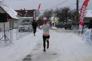 úgyhogy tessék örülni annak, hogy nekem most ilyen könnyű :). Aztán 19-nél frissítőpont, csoki-banán, és innentől lehetett csapatni lefelé. Csak az volt innen rossz, hogy fázott a teljesen szétázott cipőben a lábam, egyébként élveztem, nem volt igazán fáradtság se, izmok működtek rendesen, nem fájt semmi (fejemet leszámítva). Elvileg a faluba befelé volt vmi emelkedő, én nem éreztem, csak hogy nagyon jeges az út, és csúszik 😄 Óram szerint 2:48:xx lett, hivatalos 2:52, nem is reméltem hogy ilyen havas körülmények között 3 órán belül beérek 🙂