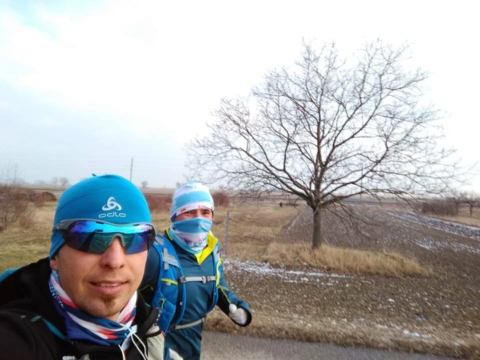 Gabi azt kérte, hogy az első 20 km 153 legyen a max pulzus. Ezt nagyon könnyedén tudtam tartani, jól esett a futás, haladtam is elég jól, minden rendben volt. Régebbiekhez képest annyit változtattam, hogy az első fél óra után elkezdtem enni, inni. Hidegnek hideg volt, de az elején még hátszelünk volt, ezért ebből semmit nem éreztünk, de tudtam, hogy ez meg fog változni. 20 km 2 órán belül meg is lett. Kezdtem felvenni a ritmust, de tudtam, hogy most is okosan kell menni, mert valahol jönni fog a pulzus megemelkedés, tartottam tőle. Nekem ezen a futáson 52 km-ig a legnehezebb, amikor átérünk az osztrák részre.