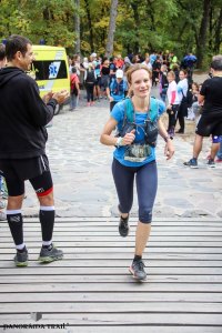 Az első 20 km-n volt csak „nyulam”, egy lány, de ott elvesztettem. Szeretek valaki után haladni, aki diktálja a tempót, ezzel a módszerrel általában gyorsabb vagyok, mint magamtól. De ezután már csak fiúk voltak körülöttem, és ott sem volt olyan, aki mögé be tudtam volna sorolni. Az emelkedőn lehagytam őket, a lejtőn elszáguldottak. Így pulzus szerint próbáltam haladni. A frissítés most nagyon jól sikerült, 3 percet sem töltöttem összesen a pontokon. Teli ivózsákkal indultam, de később már nem vettem le a hátamról, hanem a soft kulacsokat töltöttem újra. Gábor, a férjem, segített a töltögetésben a pontokon, így nagyon flottul ment minden. Annyira nem figyeltem a bevitt folyadékmennyiségre, mint a Szentendre Trailen, de a kevésbé meleg időnek köszönhetően így sem volt gond. Kicsit émelyegtem közben néha, de mindig elmúlt.