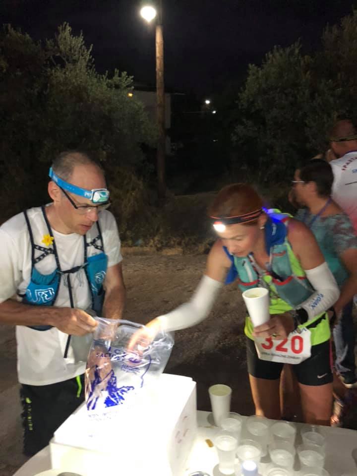 A bogyóimat – só, BCAA, kalcium, magnézium – kis csomagokra osztottam és kb 40 kilométerenként töltöttem újra. Itt is pont annyi ment a csomagba, aminek a következőig el kellett fogynia. És itt jött a krach. Kapkodtam Megarában (42 km) és nem tettem el a bogyókat. Kulacsot cseréltem, felkaptam a cuccaimat aztán go, go, go!