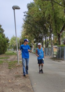 Így értem be Keszthelyre ahol a Gizicsibék 2/3-a ugrott a nyakamba. Alex épp futott, így vele nem találkoztam, de Szilvia rögtön odavitt a leveseshez, és intézett nekem egy kis levest. A sorban álló fiúk, amikor látták, hogy egyéni vagyok azonnal előre engedtek. (Tök menő egyéninek lenni, csak fárasztó.) A levest már séta közbe ettem meg, és Szilvi egy újabb öleléssel utamra engedett. De szinte azonnal jött Csillu, aki kocogott velem egy darabon. Ekkor már (90 km-nél jártunk) olyan 7 percesben közlekedtem, de nem volt semmi gondom. Valahol ezen a részen jött először Athosz, akivel a későbbiekben többször is összefutottam. Egy „hajrá Józsi bácsit” mindig kaptam tőle. Utolsó találkozásunkkor, olyan 210 km környékén, még Gabi üzenetét is átadta, hogy: szép volt a bemelegítés, most már akár futhatnék is. Athosz egy kedves ember. 🙂