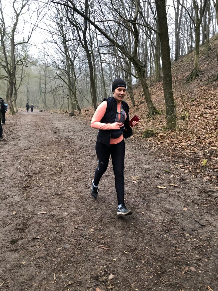 Ezután kezdett el emelkedni a terep és végre elmaradt a tömeg. Nem ehhez vagyok szokva, kérem! Sóstón kb egyedül vagyok és nagyon ritkán szoktam bárkivel összefutni. Egyáltalán nem néztem a kiliket, illetve semmi adatot, mármint a telefonos útvonalon kívül. A táj a köd, fa és SÁR háromszögben mozgott, azt nagyon sajnáltam. Néha még futottam, de a meredek felfelé nagyon kivett az erőmből és égett a zsír combom. Ahol tudtam volna futni, megállított a track, hogy kitaláljam, merre kell menni, vagy a sár. Mondjuk csak 2x akarta beszippantani a cipőm, szóval a nagyok azt mondják, ez nem volt vészes. (De.)