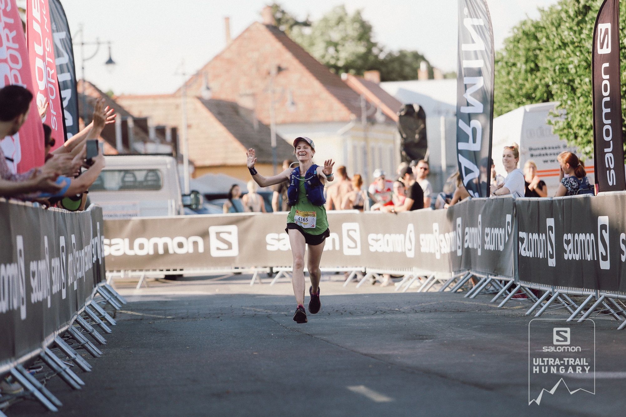 A Nyergesről hosszú lejtő visz a skanzenig, itt már fáradtak a lábak, de a Skanzenhez mégis eufórikus hangulatban érkeztem. Vizet töltöttem, a fejemre nem kértem, pedig ajánlgatták. (Egy sivatagi róka vagyok, kis testsúly-relatíve nagy testfelület, emiatt jó hőleadás, ez a titkos fegyverem nyáron.) Kicsit aggasztott az utolsó, aszfaltos szakasz, ami mindig kínszenvedés, de most este 6 után már volt árnyék is rajta, én meg beraktam fejben a Guns’n’Roses kazit és a You Could Be Mine-ra befutottam Szentendre belvárosáig. A Bükkös-patak partján jutott eszembe, hogy az utolsó 3 km-en nekem még edzői utasításra el kell füstölnöm a maradék energiatartalékomat. Eleinte ez lehetetlennek tűnt, ám ekkor megláttam még egy lányt előttem kocogni. Már meg is volt a feladat, ha meg már megelőztem, akkor vissza nem adtam azt az egy helyezést sem (bár fogalmam sem volt, hol állok). A befutó előtti kis macskaköves emelkedőn kishíján elájultam a tartósan 170+-os pulzustól, de azért sikerült vigyorogva, puszit dobálva befutni. Jaj de jól esett, hogy ott visongtatok nekem.