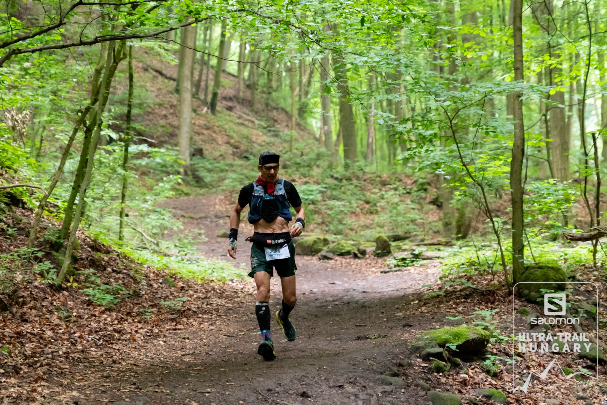 Dobogókőre nagyjából hét-nyolcadik helyen értünk, a mászásokba bele-belegyalogolva, ha a pulzus úgy diktálta, Marci felfelé, én lefelé voltam kissé gyorsabb. Dömösre lefelé pár perces előnyöm lett és mivel tavaly Tomival mentünk egy Dömos-Prédi hétszeres mászást és ezt a szakaszt jól ismertem, felfelé is elég erős lett nekem. A Prédikálószékről lefelé érzésre nem toltam neki nagyon, de aztán Lepence és Pilisszentlászló között Marci ismét utolért és közben a jobb combközelítőm egy mászásnál görccsel bejelzett, hogy valami nem OK. Marci szerint túltoltam kicsit az előző szakaszt, illetve sokkal több sót kéne ennem, amit meg is fogadtam és innentől megdupláztam a bevitt só mennyiségét (a teljes távon 24-26 sótabi fogyott, erős pára miatti fokozott izzadás indokolta).