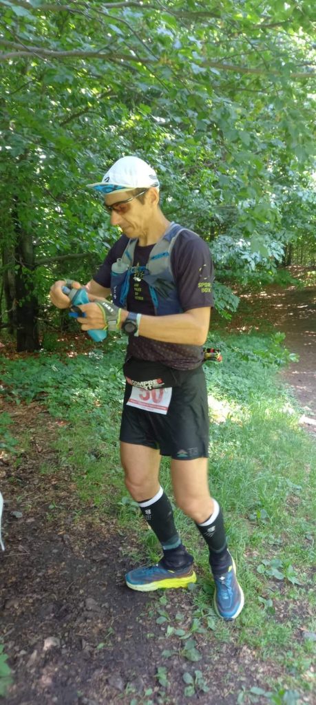 Tavalyról emlékeztem, hogy nehéz, sőt nagyon nehéz a track, jópár meredek mászással, illetve ereszkedéssel, ezenkívül a terep sok helyen sziklás, csalánmezőkkel tarkítva (idén mintha kicsit kevesebb csalán lett volna). A rajtban derült ki, hogy egy teljesítés is elég a bajnokság dobogót jelentő harmadik helyére, nem bántam, hogy nem kell éles versenyhelyzetben nyomni, hanem saját tempót mehetek. A rajt utáni enyhe emelkedőn idén nem kezdtem be, tartottam a kiírt pulzust, tavaly itt már vörös zónában mentem körül, ami persze sok lett elég korán. Aztán elérve a zöld sávot, az országhatáron haladtunk egy jó darabig és a Hét-árok keskeny, de annál meredekebb szurdokai következtek, némelyikbe szinte csak tyúklépesben tudtam lemenni, felfelé pedig rendesen égeti a combot. Olyan 6 km környékén értünk el a Nagy Hársas hegyre, nem emlékeztem rá, hogy ez ennyire meredek (1300 m – 280 m d+), itt kezdtem először bánni, hogy elindultam :). Külön meglepetés, hogy kétszer is elhiteti az emberrel, hogy közel a csúcs, de aztán odaérve kinyílik a perspektíva és újabb meredek szakasz válik láthatóvá. Innen lejtő következett, majd egy újabb, kisebb mászás a Bába-Hegyre és egy pár kili újabb lejtő után visszatérve a Tolvaj-Hegy, mint legnehezebb mászás következett. hatszáz méter távon 250 m-es emelkedéssel szinte falként tornyosul, erre emlékeztem és nem is okozott kellemes csalódást, pont olyan sz.rul ment, mint emlékeztem rá. Tavaly a Tolvaj-hegy lábától a Nagy-Milic csúcsáig lévő 4,25 km távot 610 m szinttel 1 óra egy perc alatt tettem meg nyilvánvalóan túltolva, most sokkal jobb állapotban 55 perc is elég volt erre.
