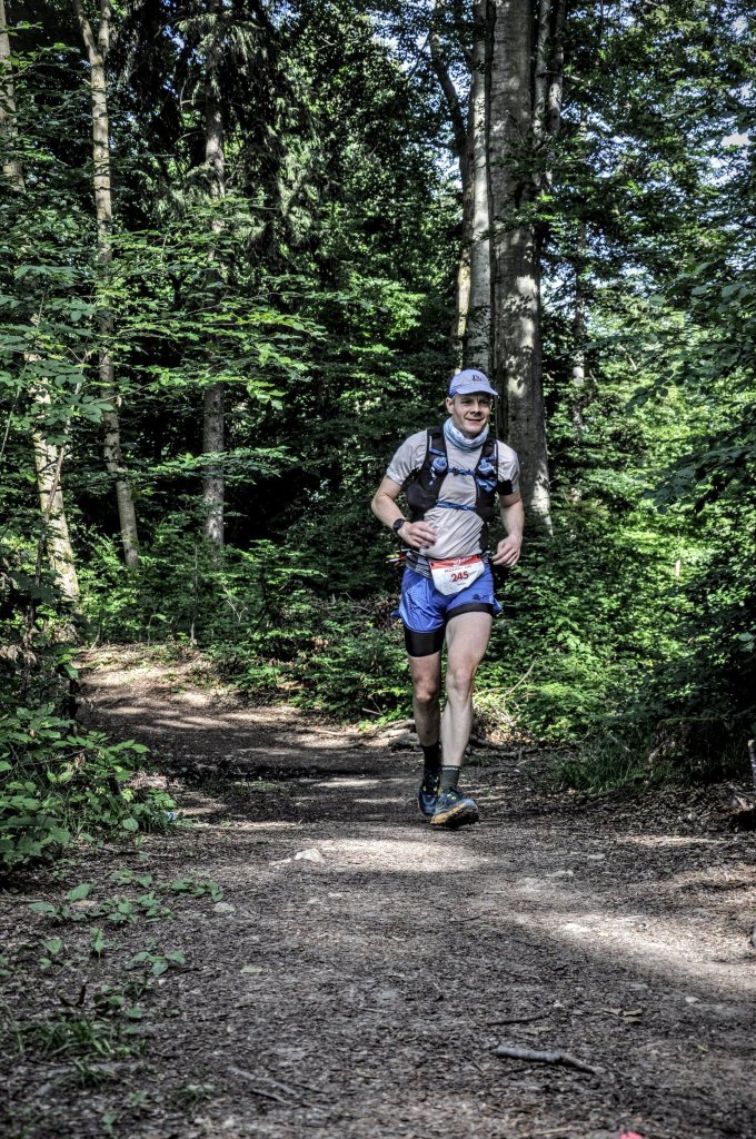 Az első 30 km kifejezetten könnyű, kevés szint, zéró technika, patent osztrák falvakat összekötő szekérutak, és az én ízlésemnek kicsit túl sok aszfalt, de legalább haladni lehetett. Tíznél a hatvanadik hely körül csekkoltam, 20 km-nél találkoztam először Lizával. Nem volt még túl meleg, úgyhogy itt még nem depóztam sokat, de a szisztematikus evés-ivást már itt elkezdtem, készültem a közelgő forróságra. 110 perc alatt lement 5 Squeezy Sports Nutrition Magyarország gél és drink gél, + másfél liter folyadék, vegyesen víz és squeezy izó. Liza a verseny után elsztorizta, hogy egyrészt nem néztem ki valami jól ezen a ponton (mert nem is voltam túl jól) illetve, hogy szinte senki nem állt meg normálisan frissíteni, csak én. Hmm…. Tovább a könnyű részen, ki a tanyai-falusi Ausztriából, be a Salzburg környéki tavak hétvégi kikapcsolódást kereső pezsgő tömegébe, először a Fuschlsee mellé. Kicsit kezdtem jobban lenni ezen a szakaszon, valahogy elkaptam a ritmust, a lejtőkön sem féltettem már annyira a gyógyulófélben lévő bokámat, úgyhogy előztem is párat, bár főleg az emelkedőkön. A Fuschlsee mellett már megmutatta erejét a nap, pedig még csak háromnegyed nyolc volt, úgyhogy itt már a szokásosnak mondható 2 perces depózást csináltuk Lizával. Ment a fejemre a jeges vizes öntés, pár falat kaja, pár korty innivaló, Squeezy só és amino + a friss mellény feltöltve a gélekkel és a kulacsokkal. Itt váltottam le a fejpántot egy jobban vizezhető Buff-ra, plusz a nyakamba került az Ultra-Trail Hungary-ra készült jégtartós csősál is, egyelőre még nem túl sok jéggel. Innen jött a pálya nehéz része, 30 km két nagy heggyel és két papíron egészen vacaknak ígérkező meredek lejtővel. Az első hegy a Zvöfelhron volt, 900 méteres emelkedés egyben, amiből az első 6-700 szépen futható, csak a vége volt gyaloglós-mászós. A kényelmesen kanyargó, napnak kitett szerpentinen szépen visszaelőztem azt a 8-10 futót, akik elhagytak a ponton a hosszabb frissítésem miatt. A mászós rész vége felé volt a frissítő pont, ahol csak leküldtem egyet a halomban álló Red Bull cola-ból, lábaink alatt a Wolfgangsee, és el is kezdtem a lejtőt, ami végül közel sem volt olyan nehéz, mint amire számítottam. Picit azért bántotta a cipő a Hársason megnyomorodott lábfejemet, de ennyi. Meg amúgy sem toltam nagyon, sok volt még innen, a nagy meleg még előttünk volt, és azért a bokámra még így is jobban ügyeltem, mint máskor. Közben utolértem a rövidebb ultra táv mezőnyének végét, innentől a célig kétszáz ultrás sporit előztem meg, az ilyen mindig kicsit változatosabbá teszi a versenyt.