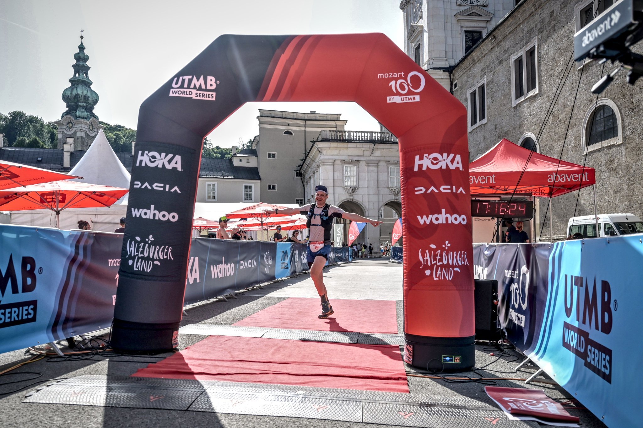 Pénteken tudtunk csak utazni, délután rajtszámátvétel, átnéztük Lizával a másnapi logisztikát, frissítést, ilyesmiket és próbáltunk pár órát aludni. A hajnali kelés most sem esett jól, de a rajt felé kocogni (bemelegítést mímelve) a pirkadó salzburgi óvárosban egészen különleges élmény volt. A környező kis utcákból csendben, kis csoportokban érkeztek a futók, akkor is megtaláltam volna a Kapitelplatz-ot, ha fogalmam sem lett volna, hogy merre van. Jó sokan összegyűltünk a rajtba, több mint ötszázan, és a mezőny is kimagaslóan erős volt, a 714-es UTMB indexemmel a legjobb harminc közelében sem voltam a rajtlistán (756-al lehetett felférni a top 30-ba). Mivel magamhoz képest egészen durva sorozatból érkeztem ide (két hete UTH, múlt héten Nagy-Hársas Ultra), ezért nem voltak és nem is lehettek komoly céljaim: szépen biztosan beérni, begyűjteni a három UTMB kavicsot, nem rásérülni a 20 napja kiment bokámra, és egyáltalán, nem belepusztulni a várható 30+ fokos kánikulába. Szóval klasszikus evős-ivós nézelődős menetet terveztem. Az első 10 km meg is erősített, hogy felesleges ma erőltetni a dolgokat, ólomlábak, nehézlégzés, de legalább a pulzus nem szállt el. Ugyanaz történt, mint egy hete a Nagy-Hársason, túl fáradt voltam ahhoz, hogy el tudjam futni…