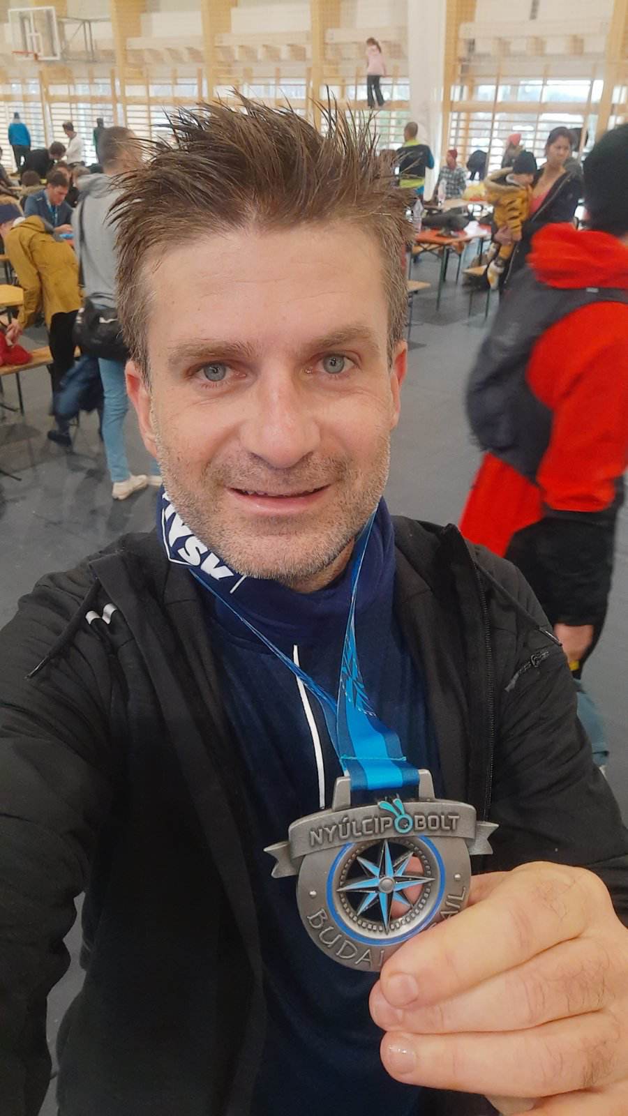 A pálya magassági vonalvezetését előre megnéztem, 5-6 km folyamatos emelkedővel indult, volt benne igazán technikás rész is, de leginkább a csúszkálás volt kihívás egy hosszú szakaszon, ami izgalmas volt, itt felfele az elején el is estem egyszer, de szerencsére hóba dőltem. Az órára a biztonság kedvéért feltöltöttem a pályát. Dombon felfele sokszor a megtett emelkedőt jelezte, ezért nyomkodni kellett közben, hogy lássam a pulzust is. Miután először elértem a 155-öt, nagyjából kigondoltam, hogy ha felfele kicsit érzem a farizmaimat, akkor jó tartományban vagyok, akkor kell kicsit visszavenni és ha muszáj, belesétálni. Ez azért volt tuti ötlet, mert a dombok nagy részét is meg tudtam futni amellett, hogy a lejtőkre is maradt erőm végig, nem hagytam, hogy nagyon ingadozzon a pulzus, szerintem egész jó kis görbét sikerült produkálni. Az utolsó emelkedő bitang szivatós volt. Iszonyatosan hosszú, nem túl meredek, de mégis sétára kényszerített olykor-olykor. Menet közben bennem volt az útravaló, amit kaptam tőled, elkezdtem hinni benne, hogy akár egy szép eredmény is kijöhet ebből. Nekem az aszfaltos befutó előtti dagonya volt a legnehezebb rész, mikor a teljesen felolvadt agyag talaj olyan szinten csúszott, hogy csak az isteni szerencsének köszönhetem, hogy nem borultam meg és nem lettem tetőtől talpig sáros. Előttem elesett egy srác és már nem tudtam kitérni előle, szerencsére ő időben pattant oldalra, ezért az ütközést elkerültem, de úgy megcsúsztam, hogy nem tudtam megállni és gyakorlatilag mintha jégen csúsztam volna hosszú métereken át. Ide kevés volt a kezdő kategóriás terepcipi, nem fogott a talpa, de önmagában a terep se egy kezdő szint volt szerintem. Szépen átmozgatott mindenemet a verseny.