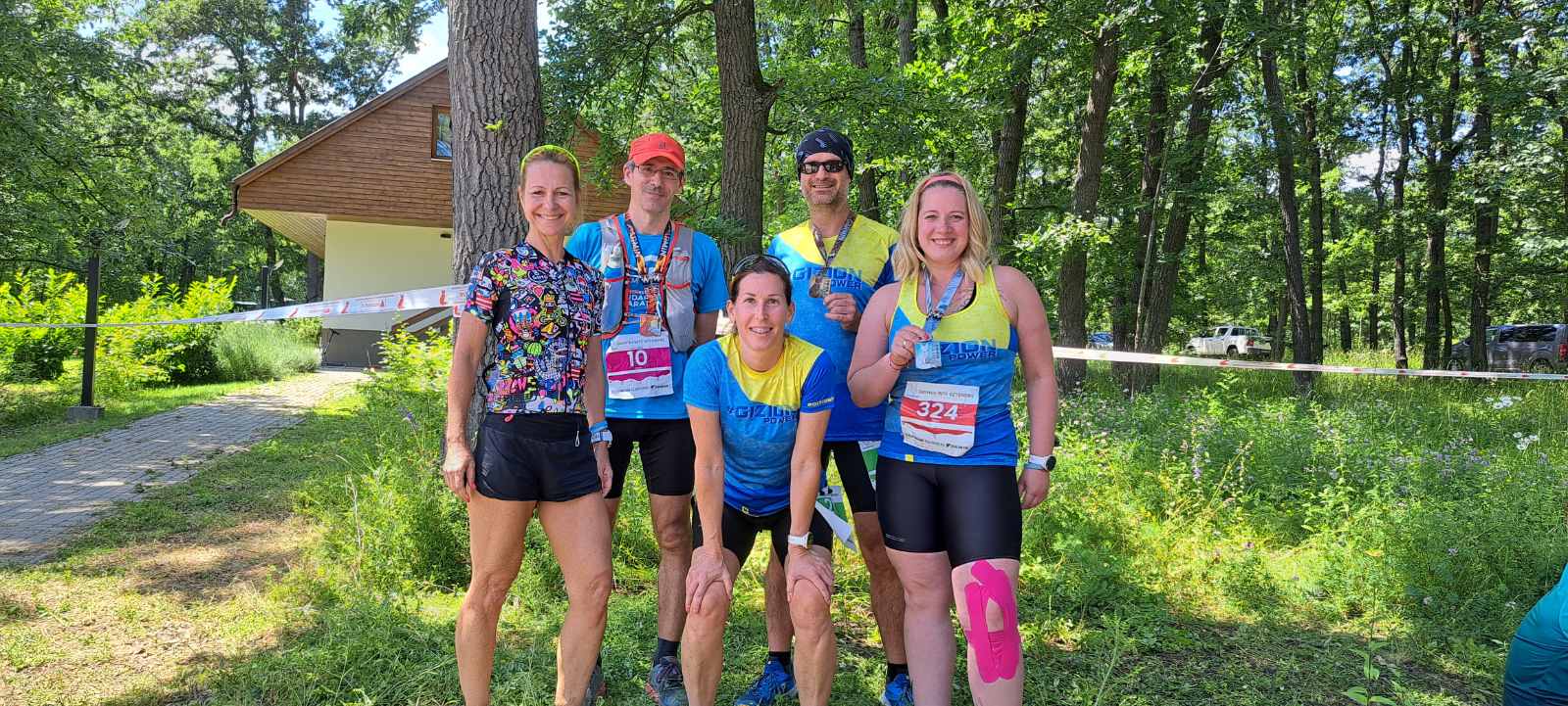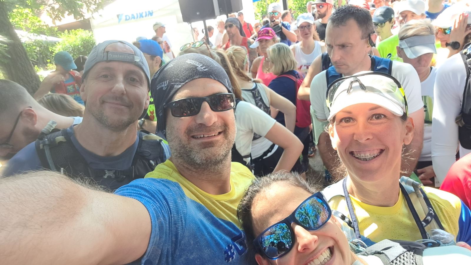 Emi, Dió, Gyuri és én egy csokorban vártuk, hogy induljon a verseny. Arra apelláltam, hogy Emit követem, amíg tudom, Dió meg tartja bennem az erőt a táv maradék 22 km-én!