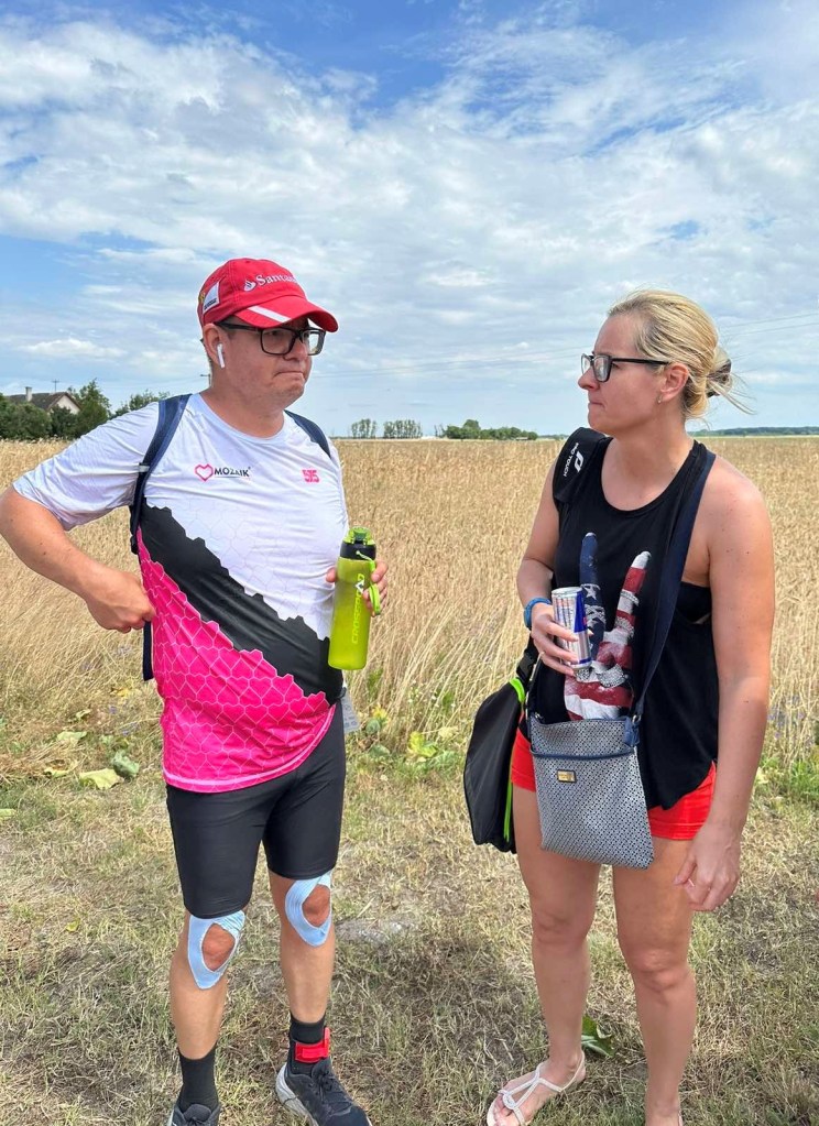 Nagyon jó volt, ekkor már bővel 5 óra felett, hozták a jeget, vizet, mit hozzanak, stb. – első ilyen frissítő támogatásuk volt, a második ponton már rutinszerűen vették el a kulacsom, töltötték fel jéggel, vízzel, a sapkámat vízezték, tök profik lettek 😀