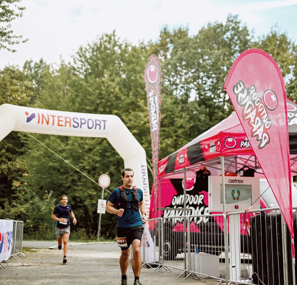 Ekkor fordult vissza az útvonal és lehetett megkezdeni a lejtőfutást. Itt indultam meg igazán, és az eddigi mászás ellenére még mindig jó erőben éreztem magam, sikerült többeket is megelőzni és beértem két futót, akikkel innentől szinte a végéig versenyben voltunk. A lejtőkön előre mentem megpróbáltam meglógni előlük. Közben próbáltam azt is észben tartani, hogy következő héten lesz az UB Trail és ne essek túlzásokba, esetleg annak a rovására. Mivel nem tudtam igazán leszakítani az egyiküket, elém engedtem és próbáltam finoman én tolni hátulról, hátha nincs annyi tartaléka és előbb kifárad esetleg mint én. Végül ő váltott tempót, ami után én most elengedtem a dolgot, mert tudtam hogy ezt nem bírnám tartani a maradék 3-4 kilométeren folyamatosan. Persze közben utolértem mást is, aki pont jól jött, mert számomra megfelelő tempót futott és legalább behuzatom magam vele a célba. Gondoltam én, de aztán az utolsó kanyarokban hallottam a bemondót, és kezdtek feltűnni a sátrak és a cél. Itt úgy döntöttem elcsípek még egy helyet és sprintelésbe kezdtem, talán ő kicsit későn kapcsolt és már nem tudott utolérni, kerek 2 másodperccel értem be előtte 😀