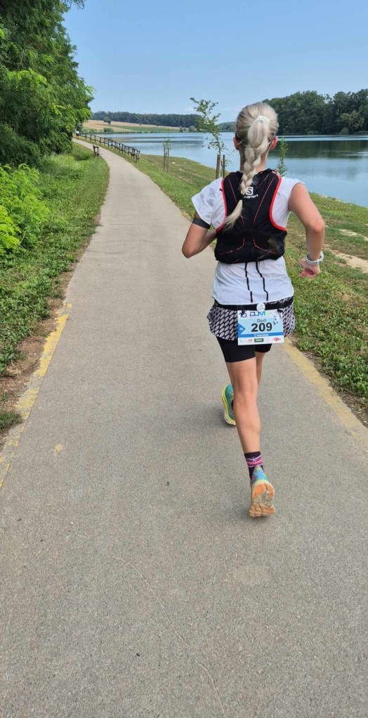 Ez volt a mentális/ lelki része, de ami a futást illeti: az első két kör 3 óra körül volt, a 3. tervszerűen ment, a negyediktől viszont nem tudtam (=hiába próbáltam, nem voltam képes) megfelelő mennyiségű energiát bent tartani, ezáltal folyamatosan lassultam, az utolsó körben a kocogást leváltotta a gyorsgyaloglás, azt viszont toltam, ahogy bírtam. Nem volt kaszinózás, nem volt rihiröhi, hanem fókuszáltan mentem.