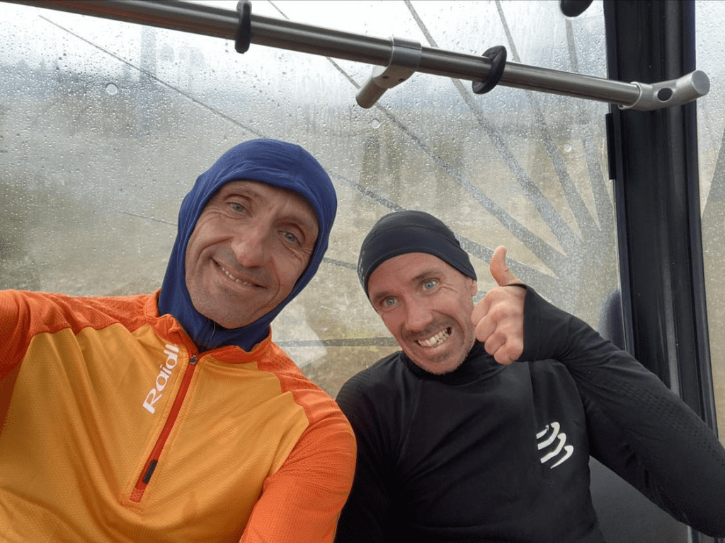 Fura, de tartottam a versenytől, ezért eléggé felszínesen tudtam csak aludni, szinte vártam, hogy végre már reggel legyen. 7:15-kor volt a rajt, odáig egy bemelegítő futás az aszfalton felfelé. A rajtban viszonylag kevesen, még a nevezettekhez képest is, úgy látszik az előre jelzett rossz idő (eső, hideg) sokakat visszatartott. Minket nem 🙂