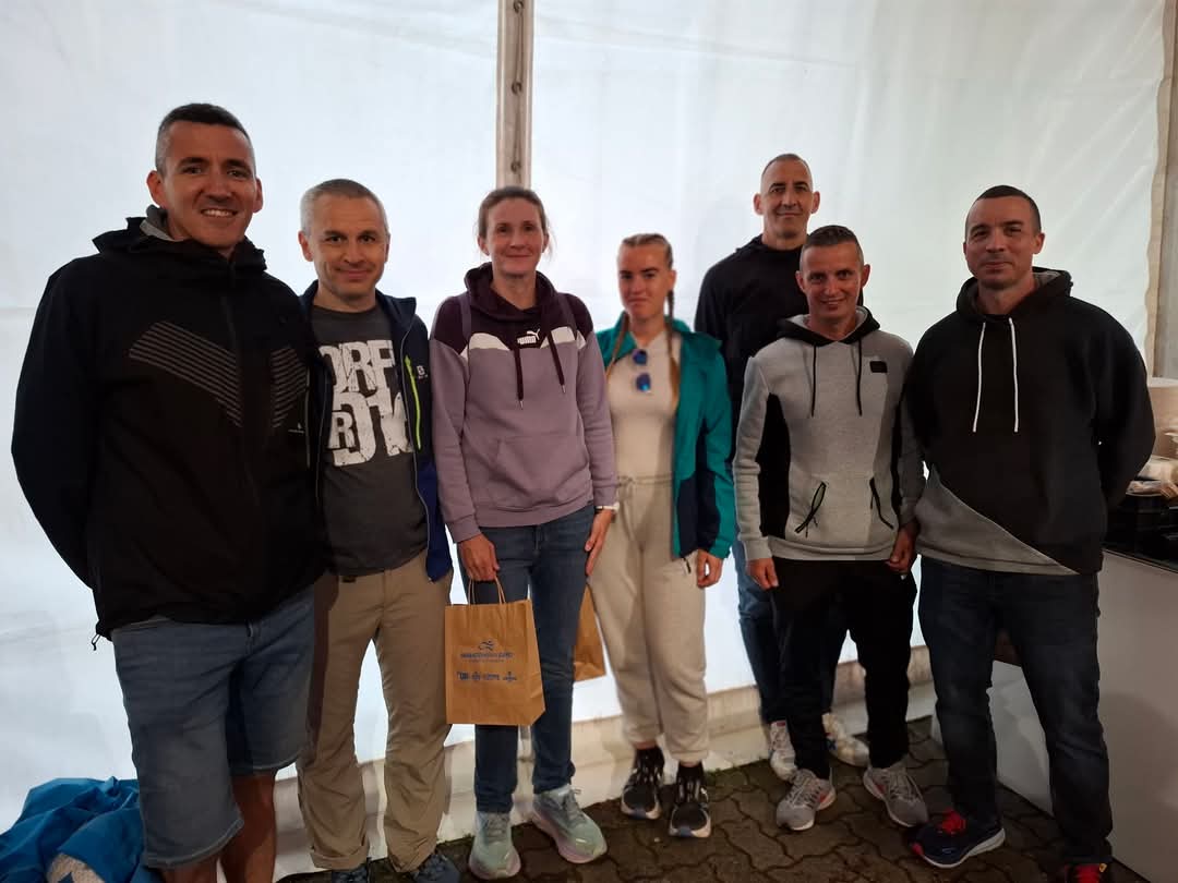 A tapasztalat hiányának köszönhetően, valami nem stimmelt a frissítésben. A kézfejem feldagadt, a hasam is dupla akkora volt mint normál esetben. Picit meg is ijedtem. Valamiért felvizesedett a szervezetem. Lehet a sótabit bátrabban kellett volna fogyasztani, de mint ahogy említettem ezen a téren még nagyon kell a tapasztalat. Igy vágtunk neki az utolsó nagyjából maratoni távnak. Itt már sokszor bele kellett sétálnom, igy értelemszerűen a kilométerek is nehezebben fogytak. A lábak jobb állapotban voltak, mint korábban és a közérzetem is nagyon rendben volt. Csak az a vizesedés akadályozta, hogy normál tempóban tudjak haladni. Azért gondolom, hogy a vizesedés volt a gond, mert ahogy nekiálltam futni, rögtön azt éreztem, hogy kapkodom a levegőt, mintha nem is tudom milyen tempót futnék. Mintha belülről folytanának meg. De abszolút nem estem kétségbe, mert tudtam, hogy megcsinálom. Ott már nem állíthat meg semmi. Fejben nagyon rendben voltam, csapatom mellettem állt, biztatott, támogatott. Nem is volt más opció. Füreden a cél előtti utolsó frissítési pontnál, hívott bennünket a Dóra, hogy ha még picit összekapom magam , akkor meglehet 23 órán belül. Összeszedtem magam és amennyire csak lehet iparkodtam, de úgy voltam vele, hogy ha 23 -al fog kezdődni,akkor sem leszek bánatos.Közvetlen az utolsó csippantás előtt Hanka kiáltott még egy nagy hajrát, ami nagyon jól esett ott a cél előtt. Megcsináltam, megcsináltuk!!! Végül fél percen múlt, de csak meg lett és 22-vel kezdődik a célidőm.