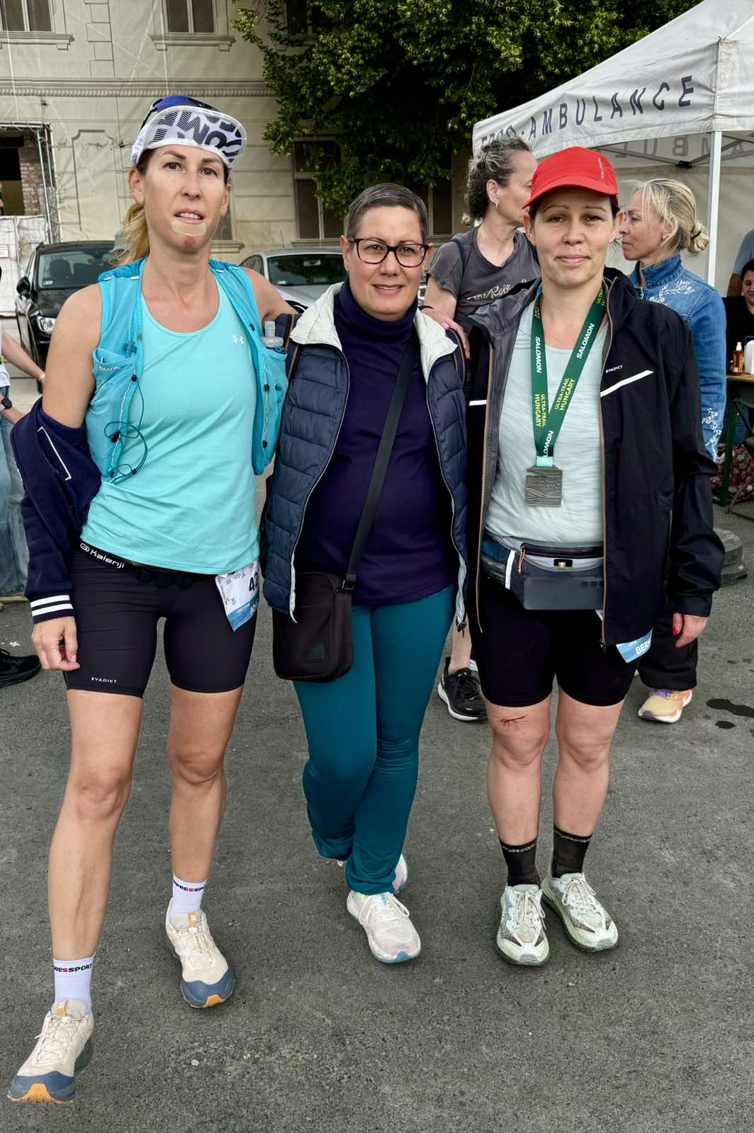 A célban tudtam, hogy várni fog rám Bazsi, aki már majdnem 3 órája beért a célba, a gyerekeim apukámmal, a futó barátaim, az edzőm és a nem futó barátaim: Szilvi+Füli a gyerekeikkel, akik a pályán, valahol Visegrád után meg is leptek egyszer és egy-egy öleléssel adtak egy kis erőt!