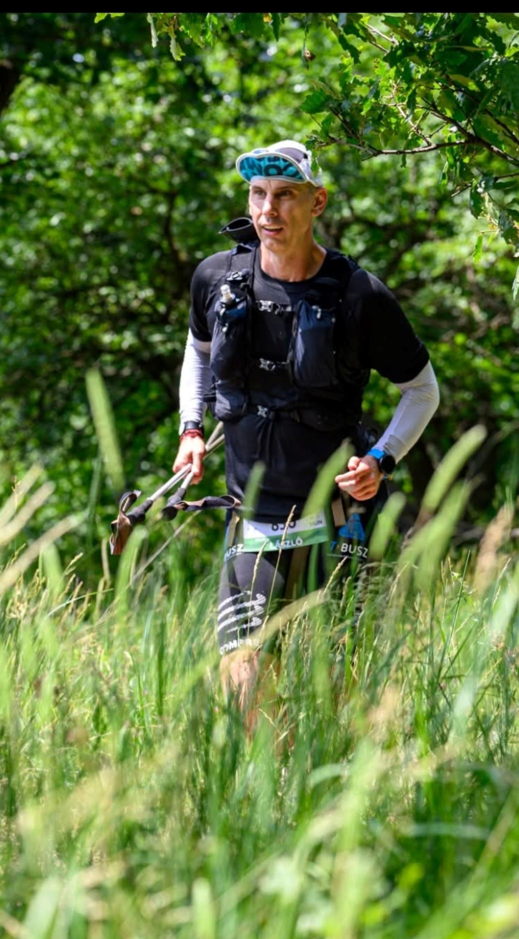 Rajt előtt negyed órával sótabi, meg egy kis szénhidrát lecsúszott, bemelegítettem kis kocogással, gimnasztikával. Most is elmaradt a szelfi, a panoráma fotózás, teljesen a versenyre ment a fókusz, igyekeztem előre helyezkedni, tudtam magam hova tenni a mezőnyben, a Budain kifejezetten jól jött ez a taktika. Nem akartam beragadni az elején, de a 6 km-es emelkedőt elfutni sem akartam. Szerencsére ez egész jól működött, nagyon sokáig mindig tudtam valakinek az árnyékában haladni, aki mögött jól tudtam haladni, pulzust tartani. Érzésre is nagyon jó volt, a Pap-rétre meglepődésemre teljesen jó állapotban érkeztem. A meleg nagyon érezhető volt, ezen a 11 km-en elment majdnem két fél literes kulacs vizem, a frissítőponton újra kellett tölteni. Közben kis keksz, csoki, banán is lecsúszott, kiegészítve a fél óránkénti, váltva géles/mézes szénhidrát bevitelt. Innentől még jobban éreztem a meleget, folyamatosan ittam, amit viszont a gyomromban éreztem a lötyögést, aztán elkezdett beszúrni az oldalam. Ez nem volt kellemes, meg eléggé újdonság is volt nekem ez, picit visszavettem, de azért haladtam folyamatosan.