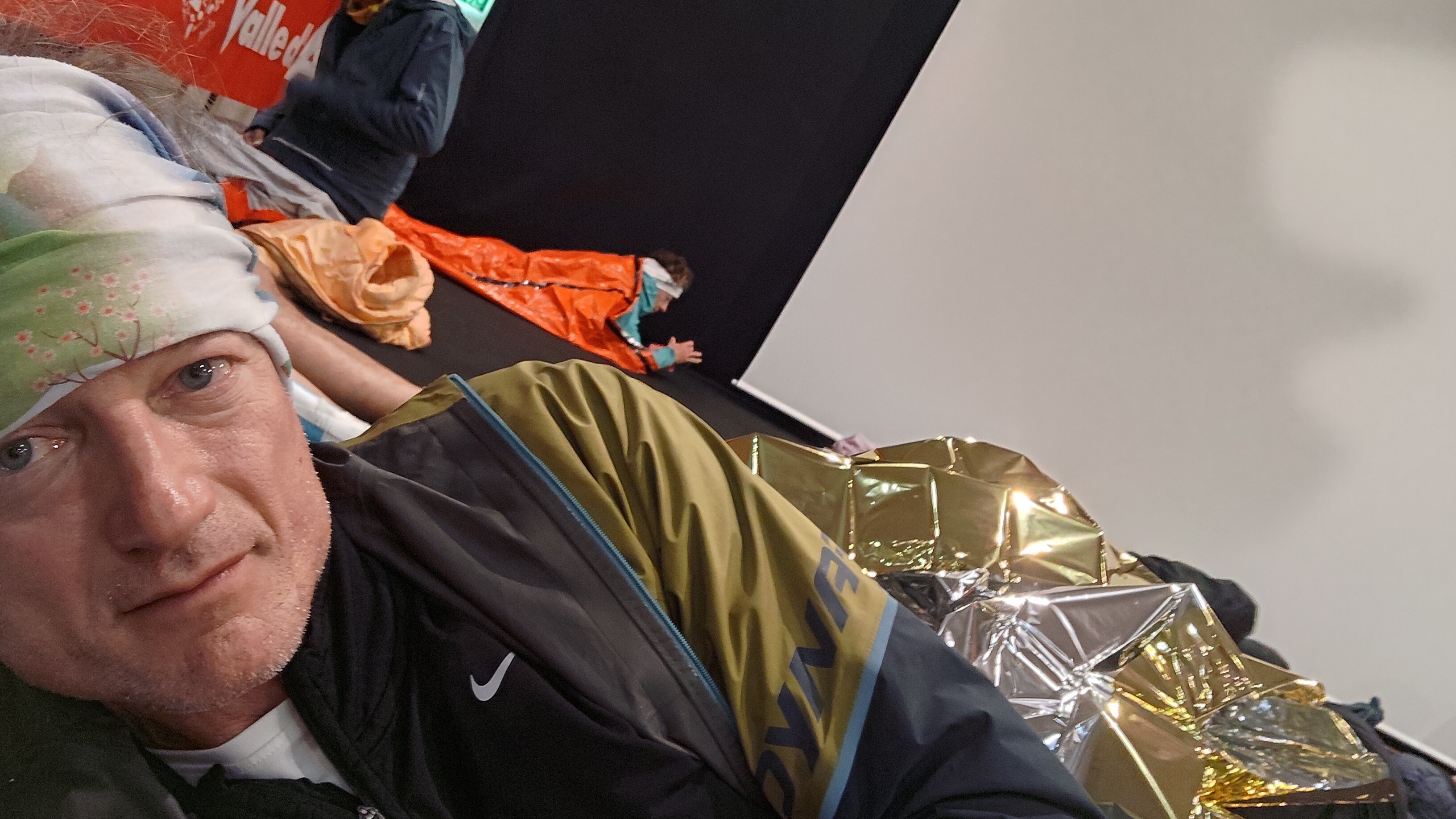 Bringa (198km/4800m): Álom volt. Mondjuk a Stelvio tetejéig, azaz 150km-ig. Jól ment, jól voltam felöltözve, jól frissítettem és ezzel az egésszel belehergeltem magam valami pozitív flowba. Egyre inkább úgy éreztem és mondogattam is magamnak, hogy ez az én napom, bármit meg tudok oldani, ha gond adódna, de nem fog. Szépen növeltem az előnyöm az itinerhez, egy órával jártam a tervezett idő előtt a Stelvio lábánál és még a csúcson is. Azért ahány kép készült a bringán, annyiféle ruhában vagyok, szóval volt, megállás, frissítés, öltözködés, de minden nagyon flottul ment. A Stelvio lábánál már látszódtak gyanús felhők és az előrejelzés is mondott esőt. Ez volt a harmadik Stelvio mászásom, azt szerettem volna, ha az összes Strava szegmensen a legjobb időmet érem el, ez azért nem jött össze, de azért elégedett vagyok így is. A felsőbb részeken már kezdett esegetni az eső, majd valami dara is, fent a csúcson pedig jégeső. Gyors felöltözés után a lefelé menekülés volt az egyetlen lehetőség, minél gyorsabban leérni, ahol melegebb van és inkább csak eső. Azért ez a lejtőzés nem volt egy leányálom, 2-3 fokos időben, full vizes cuccokban (mindent felvettem, csak az esőkabátot nem, a téli vastag kabát nem vízálló, bár a vízálló gatya ugyanúgy átázott), szétfagyott kézzel fékezni próbálni a kanyarokban a felnifékes bringával, amin persze alig fog a fék, a fékgumi viszont érezhetően kopik, mert egyre jobban be kell húzni a fékkart, hogy legyen valami lassulás. Egyszer megálltam, hogy feszítsek a bowdenen, de esélytelen volt a fagyos kezeimmel eltekerni a bowdenfeszítőt. Egy örökkévalóságnak tűnt, pedig a 19,5km-es ‘Stelvio Descent’ szegmens 35 perc volt, azaz 33,6-os átlag még így is, és ennél korábban csak 5-6 perccel jöttem le gyorsabban, szóval olyan nagyon sokat nem is vesztettem itt el. Lent a síkon jött egy nagy megálló, 20 perc. Rá kellett jönnöm, hogy az összes ruha vizes rajtam és nem fogom tudni kifűteni és a frissítésem is elromlott mert az időjárás elvitte a fókuszt, pedig volt még innen 25km bringa 1000 méter mászással és utána egy maraton. Szerencsére szinte az összes bringás ruhám a kocsiban volt, így teljesen szárazba tudtam öltözni, még pót bringás cipő is volt, meg betoltam pár extra zselét is, innen megújulva tudtam továbbindulni. Valahol itt mondhatta Larzen, hogy írtak a szervezők a Supporter chat-be, hogy az autós kísérők lehozhatják a bringásokat a Stelvioról és csak a lejtő alján kell visszaülniük a bringára. Ez mondjuk egy órával azután volt, hogy én fent voltam, teljesen hülyeségnek is tartottam, de utólag látva a fenti fényképeket, hogy milyen havas volt az út fent, megértem a neutralizálást. (bringa 10:06:37, 49. helyezés)