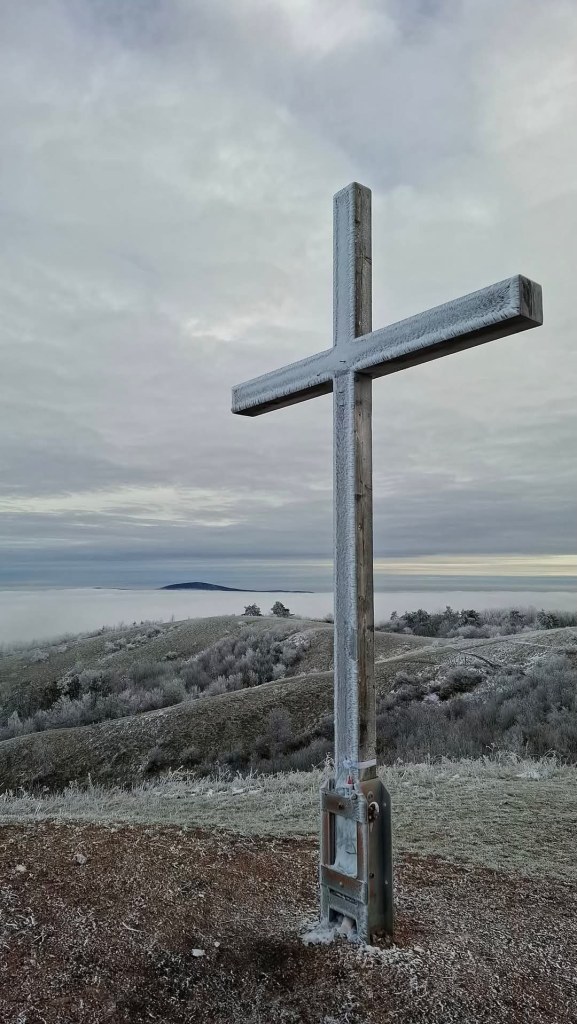 Hamarosan felértünk a Nagy-Szénásra. Na ott valami csoda várt bennünket. A növények zúzmarásak, a közeli dombok porcukorral meghintve, és a kék ég is előbukkant foltokban. Többen megálltak fotózni. Én is szívesen megálltam volna, de inkább a szememmel fotóztam és lendületesen haladtam tovább. Már csak azért is mert több lánnyal haladtam együtt, nem akartam nekik előnyt adni. Mivel itt még csak L távosokkal futottam könnyű volt követni, hogy kit tudok befogni. Aztán valahol a Tarnai pihenő előtt becsatlakozott a rövid táv. Hirtelen nagyon sokan lettünk, és hirtelen nagyon sok csajjal futottam😊 Itt reménytelen volt kiderítenem, hogy ki melyik távon van, ezért csak az maradt, hogy mindenkit ellenfélnek tekintve tolom lefelé ahogy csak bírom. És bírtam! Imádtam, hogy félelem nélkül, önfeledten csapatok. De kellett már ez az érzés! A táv vége előtt kb. 2km-el a mellényemen babráltam valamit, nem figyeltem, és elestem. De, mint egy keljfeljancsi baba gyorsan felpattantam. Nekem nem tűnt komolynak az esés, de több fiú is megkérdezte, akik utánam jöttek, hogy minden rendben van-e😊 Végül az utolsó km-en Csabika kiáltott rám és hasított el mellettem. Még sosem futottunk így együtt, jó volt érzékelni milyen gazella tempóban hasít. Kifutottam magam teljesen! Utána még bandáztunk, sütiztünk együtt a versenyközpontban.