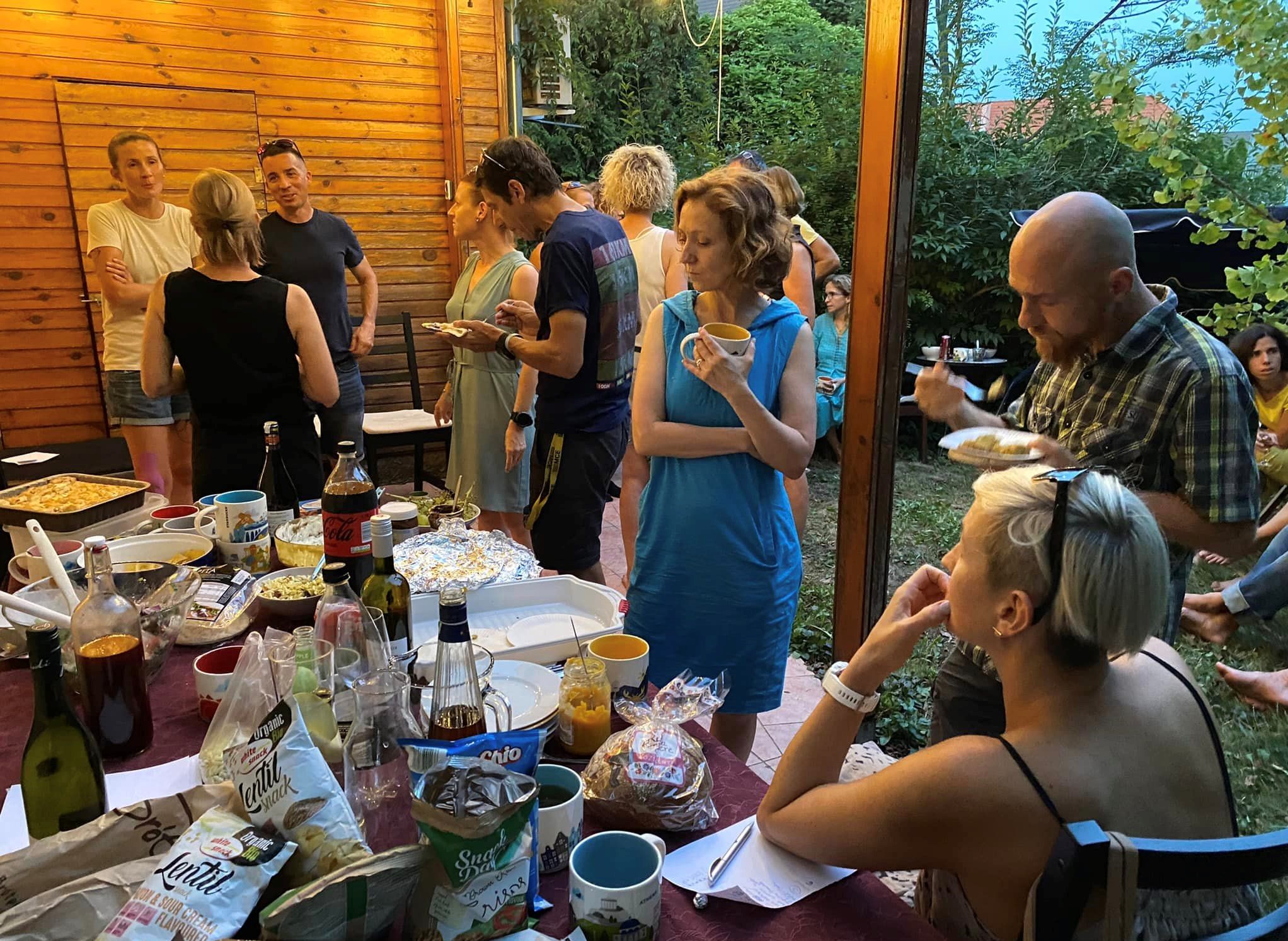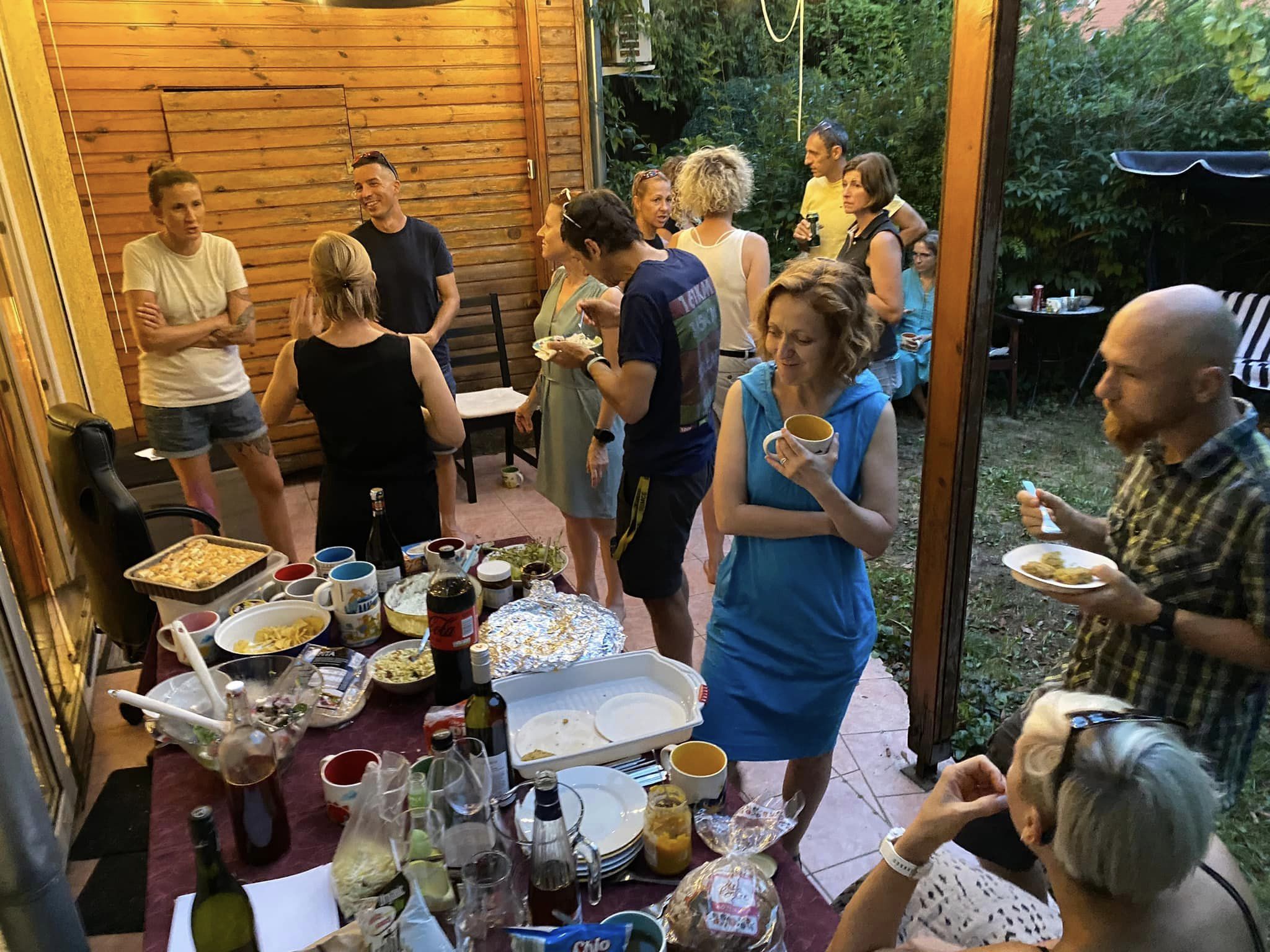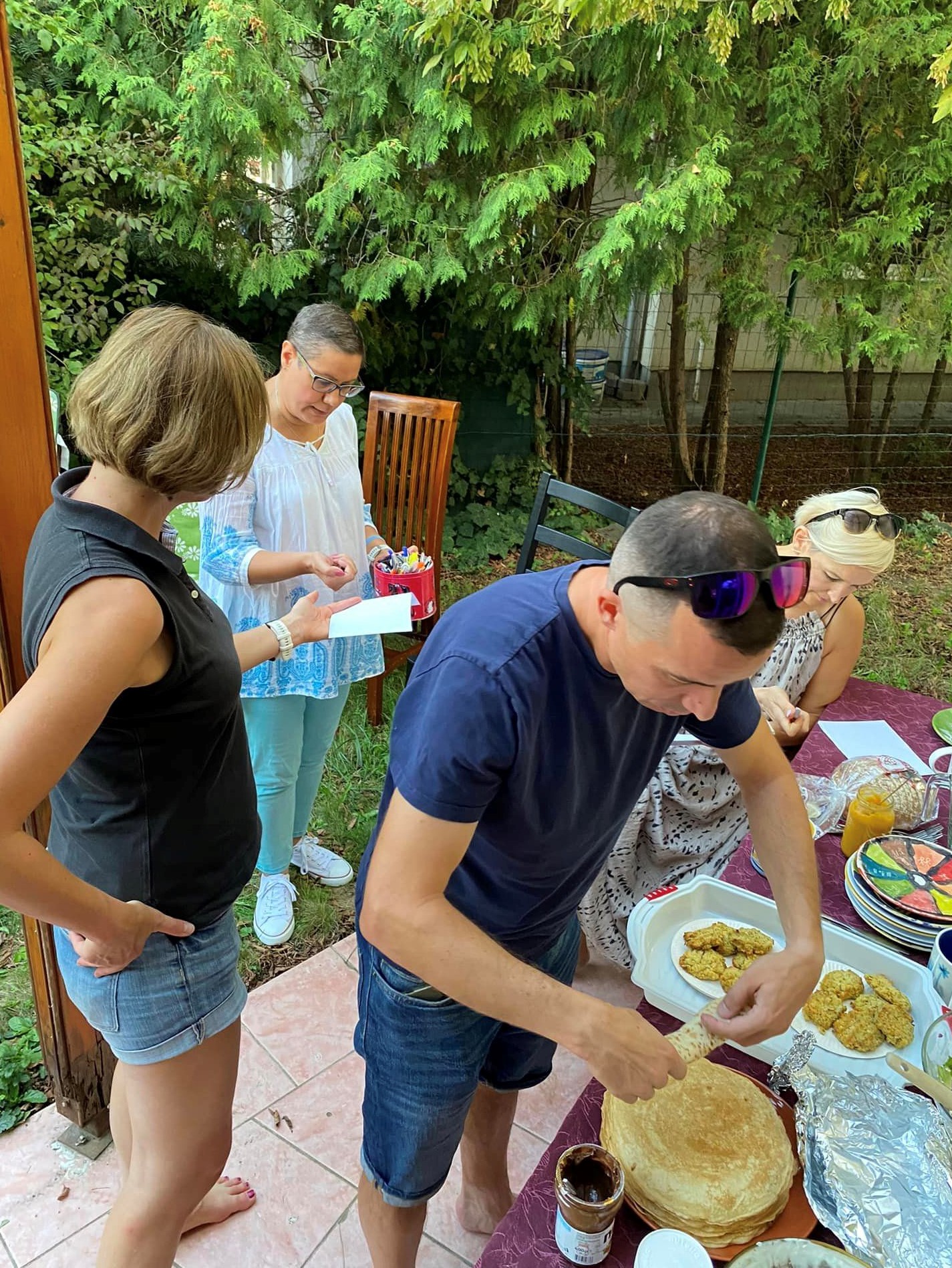 A neves esemény előtt egy bazi nagy görög lagzit partit tartottunk, Metaxával, mazsolaborral, görög salival, soooook palacsintával, és kvízzel.