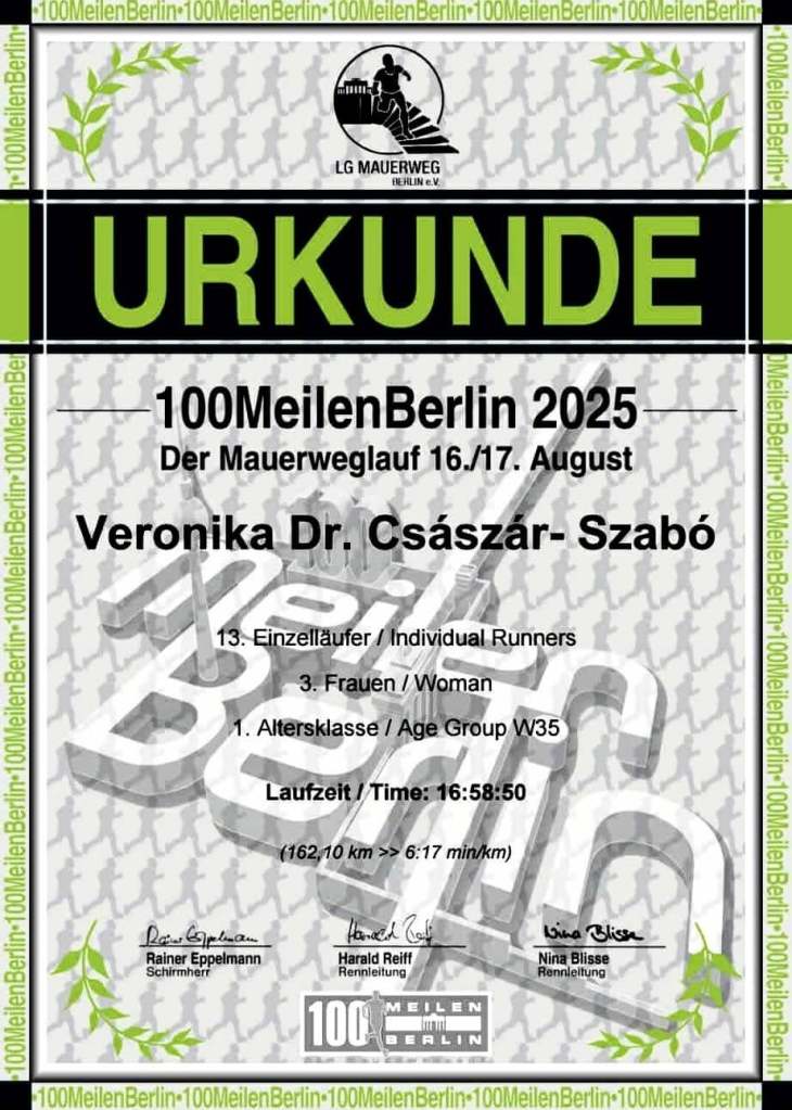 Már több, mint két hete volt a verseny, de eddig nem sikerült megírni a beszámolót róla. Nem azért, mert nem volt jó élmény, vagy mert nem jelentett sokat – épp ellenkezőleg. Amíg nem írom le viszonylag részletesen, hogy milyen volt megélni most ezt a 100 mérföldet, addig csak az enyém, addig még ott vagyok magammal és a futással, addig nem engedtem még be senkit abba a burokba, amiben 4 napig voltam magammal Berlinben.