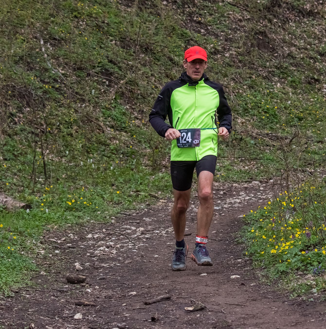 De eleget beszéltem arról, hogy mitől nehéz ez a verseny, most jöjjön, hogy mitől könnyű. Szinte mindentől. Frissítési tervet csinálni és összekészíteni a géleket, izókat? Nem kell, mert nem lehet saját kajánk, csak a frissítő asztalok kínálatán mehetünk. Órát feltölteni, tracket az órára tenni, az útvonalat bemagolni, a jelzésváltásokat megjegyezni? Nem kell, hiszen még a rajtban sem fogjuk tudni, hogy merre fogunk menni. Lizával megtervezni, hogy hová jön majd oda az útvonalon és ott mi a teendője? Szintén nem kell, mert az útvonalat a kísérők SEM fogják tudni. Gyakorlatilag annyi dolgom volt a verseny előtt, hogy kitaláljam, hogy milyen cuccban és cipőben futok, amit végül reggel az időjárás ismeretében döntöttem csak el. Négy pár cipőt vittem Zircre, nem bíztam a véletlenre. Vittem aszfaltost, nagyon aszfaltost, terepet meg sáros szar terepest is. Mivel már péntek kora délután megérkeztünk a szállásunkra, ezért futottam egyet Lizával a szálloda óriása parkjában (a golfpálya zárva volt az eső miatt, ehh) Nem volt nagy sár ugyan, és én alapvetően aszfaltos útvonalra számítottam a versenyen, de ennek ellenére inkább egy Hoka Speedgoatban indultam el, mert az aszfalton sem fogalmatlan, terepen meg természetesen remek, és az igazán hosszúakat egyébként is ebben szoktam futni. A szeles hűvös időre tekintettel hosszú nadrágot választottam, egy Compressport 3D Thermo kapusznyis felsőt és egy fényvisszaverős Compressport szélmellényt, ami szintén kötelező felszerelés volt (már nem a szélmellény, hanem a láthatósági cucc).