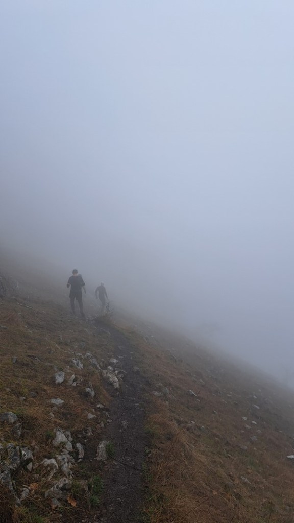 Szemerkélő esőben indultunk, ami később hol erősebbre, hol gyengébbre váltott, ami tejköddel párosult. Személy szerint imádom a ködöt, bár itt kissé ijesztő volt, amikor már az ösvényt sem láttam magam előtt.