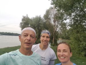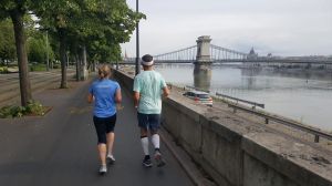 Nagyon jól sikerült minden szempontból a mai nap! Jó volt együtt futni Józsival, abszolút alkalmazkodott az én tempómhoz, átvezetett árkon-bokron, piroson, úton, mindenen ügyesen Kriszta meg szuper kísérő volt, jelezte a km-t, az időt, szólt, hogy enni, vagy inni kellene, rákérdezett a pulzusra, háát ilyen figyelemben még nem volt részem! Előbb a rakparton futottunk a Kopaszi gát végéig koppanásig, majd vissza a szigetre. Visszafelé már nagy volt a biciklis, gyalogos, futós forgalom. Majd a szigeten tettünk egy kört és még egy kicsit. A végén már a Józsi órája alapján mentünk, mert én elbénáztam az enyémet, és hát Józsi a hosszabb utakat szereti, így egy kicsit több lett. Velem minden rendben, a lábaim jól vannak, persze fáradtak, de nem fáj futás közben se a térdem, se a combom. Holnap egyedül megyek, még pontosan nem tudom merre, de majd itt a környéken. Már csak két nap (megfordult a fejemben, hogy lehetne összesen tíz nap is, na jó, nem kísértem).