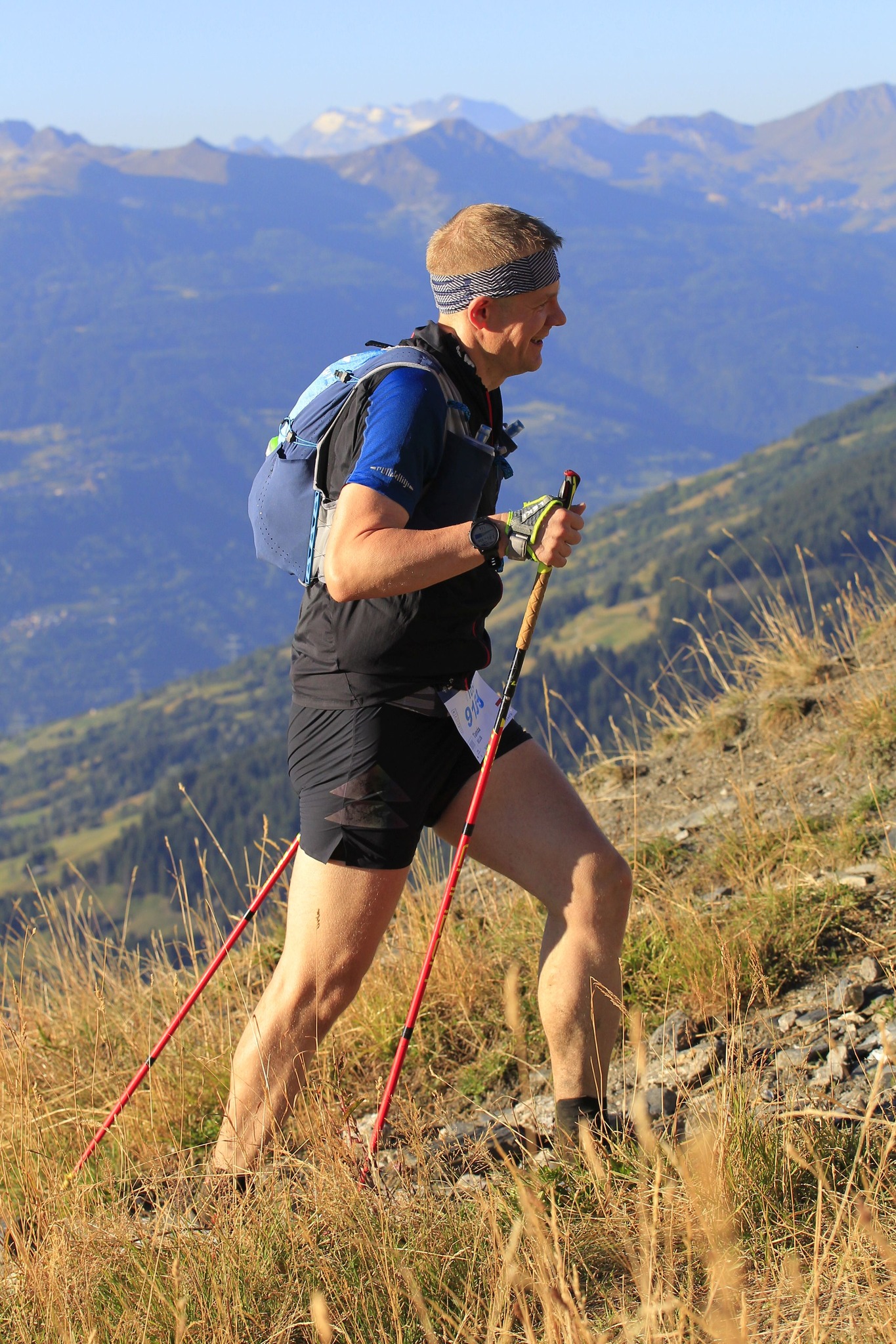 Bent Liza várt a cuccaimmal, közben a teremben egy zongorista valami rohadt álmosító dallamot játszott, egészen szürreális volt. A Killing in the name-nek jobban örültem volna. Liza még az érkezésem előtt ügyesen kipakolt mindent a „helyünkre”. Az első dolgom az volt, hogy feltegyük a telefonom és az órát tölteni, az a pár perc is segít, főleg a telón, a Forerunner 955 solar simán elment volna töltés nélkül is a végéig. Azután gyorsan kicseréltük a kulacsaimat, bennük a cseresznyés squeezy-vel, megkaptam a következő 40 km-re való fejadagom nagy részét (a többit majd a két kajás pontról veszem magamhoz) kitettem a szemetemet és kicsit lógtam a csarnok focipályájának kapufáján, hogy megpróbáljam kimozgatni a derékfájást okozó fránya 4-es és 5-ös csigolyámat. Azt hiszem indulás előtt pár kanál főtt rizst is bekanalaztam. Miközben kisétáltam a csarnokból, éreztem, hogy a beállt derekammal még komoly bajok lehetnek, meg is kértem a kint álló apukámat (aki a négy diplomája mellett képzett gyógymasszőr) hogy próbáljon már kicsit belenyúlni a kritikus részekbe. 1-2 percet tartott a rögtönzött kezelés, de csodákat tett, gyakorlatilag fájdalom nélkül kezdtem meg a hosszú és lassú botozást a Pralognan csúcsi átkelő felé vezető 1900 méter szintemelkedésű mászást. Az ösvény eleinte több ponton is keresztezi a magasabban fekvő házak felé vezető aszfaltutat, majd rövid erdei rész után tágas, füves réteken kanyarog felfelé. Kis társaság csapódott össze, hárman-négyen tettük vettük libasorban a lábunkat és a túrabotokat. Egy kis levegő azért a mászás közben is jutott arra, hogy Bernarddal, egy jó fej új-zélandi futóval, beszélgessek, szó volt a Gyűrűk Uráról, az új-zélandi kosarasok legendás 2014-es kosár VB-s haka táncáról az amerikaik ellen, és hogy mekkorák a hegyek nálunk és náluk. Közben elfogytak körülöttünk a fák, és egyre másra hagytuk el a 120 éve épült erődrendszer épületeit. Bernard egy nagyobb bástyának egész megörült, de felvilágosítottam, hogy ez még nem az az erőd cimbora, az ide még egy 500 méteres mászás. A délelőtti napsütés kellemesen melengette a hátamat, jól esett az éjszakai hűvös után.