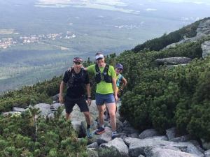 Épphogy az általad mondott minimális 5 óra alvás után (hajnal négykor ébresztő) elkocsikáztunk hatan a busz indulási pontjára, amivel a rajtba, Zakopanéba szállítottak minket, még egy óra buszozás, lezárt szakasz miatti elterelés után kb. hétkor indultunk egy kb. 1100 m-es mászással, szépen, normálistempóban, a nem sziklás részeken bottal, együtt hatan (Anita, Tomi, Juci, Viola, Fanni meg én, akik egy szálláson voltunk), ott találkoztunk Anikóval is, aki szintén velünk jött végig a továbbiakban. A végén volt láncos rész is, ahol a sorban állást elkerülendő a könnyű részeken a sor mellett kapaszkodtunk fel. A lefeléket nagyjából futottuk, ahol lehetett, így a Zawrat hágó után is. Egy kisebb emelkedőt követően meredek lejtőn mentünk le a Morskie Oko menedékházhoz, ott frankó almás pitét vettünk, a zloty-t a pontőr adta a túra résztvevőinek.