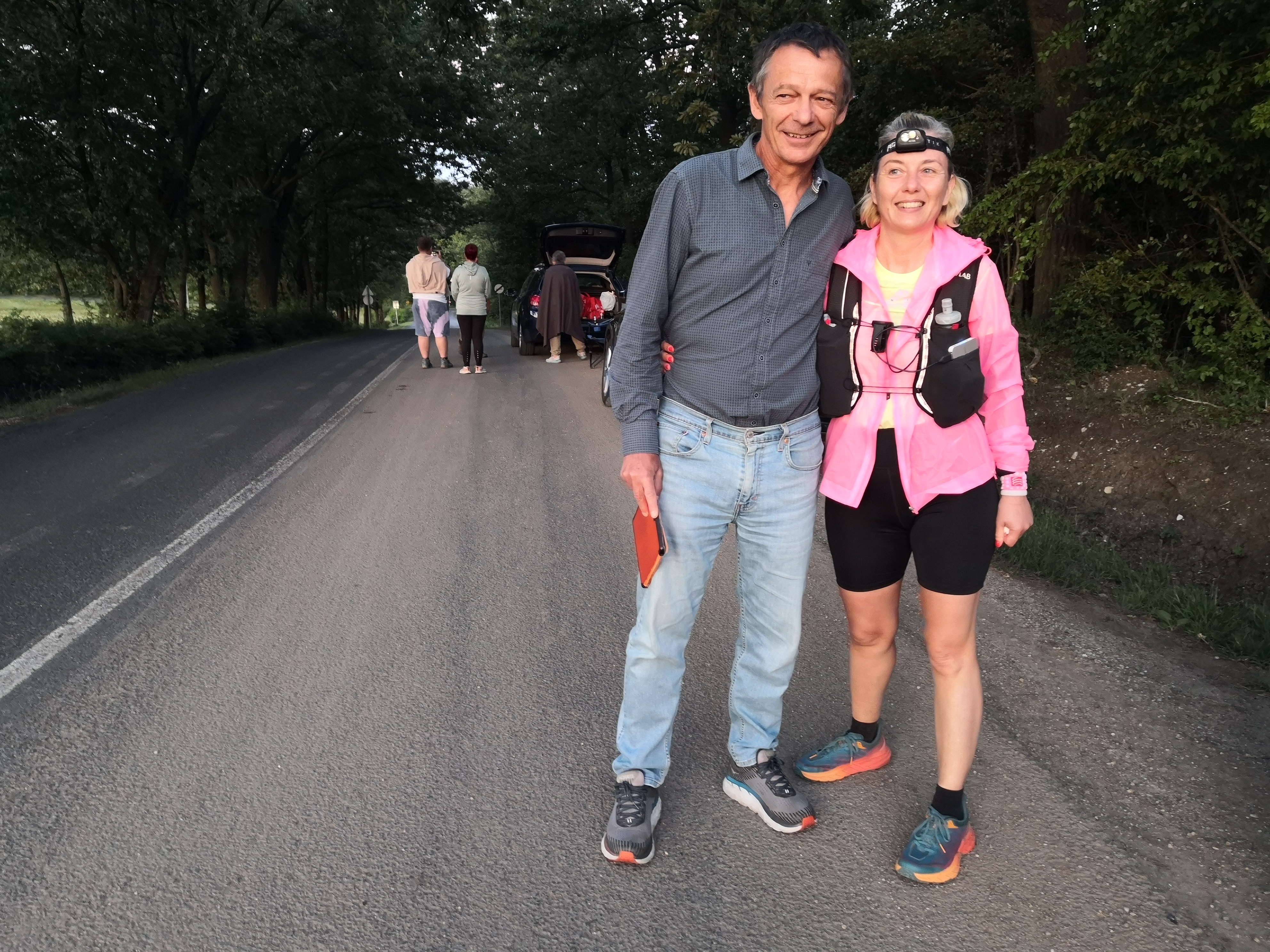 Óriási meglepetésemre megjelent Neubrandt Józsi a hófehér paripáján, itt a semmi közepén.😊 Ő volt az, aki a Nagy Szénás 75-ön meglepetésként futotta velem az utolsó 35 kilométert és hatékonyan próbálta elterelni a figyelmem a fáradtságról, Romhányi verseket szavalva.