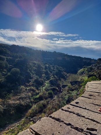 Elindultunk, és röviddel a rajt után beszorultunk a szűk kanyonba le- és feljáróba. A második km-em konkrétan 14 perces lett, nem tudtam csak sétálni, és ez erősen felidegesíthetett volna, hiszen nekem minden perc számított. Elvileg a kiírás szerint 3 órám volt elérni a második frissítőpontot, ami 22,5 km-re volt a rajttól, és ebben volt kb az össze szint. Nem lehetetlen küldetés, de nem is simaliba kategória nekem.