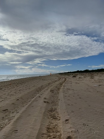 Innen magányos futó lettem, egy unalmas hosszú gáton. Erre a részre terveztem a száguldást, de sajnos ez nem jött össze. Nyilván fáradt is voltam, de leginkább az út nem volt alkalmas számomra a gyorsabb futásra. Azért haladtam, és szinte már vártam az utolsó 4,5 km-et, ami a homokos tengerparti befutót jelentette. Várta a halál, de hát ezt is meg kellett csinálni. Hamar beláttam, hogy a süppedős homokban nem lehet futni, annyira sem, mint képzeltem, így lementem oda, ahol a tenger nyaldossa a lábunkat, és ott próbáltam haladni. Hihetetlen, de ez a szakasz is véget ért egyszer, és ott volt a befutó, ahol végre újra tudtam futni, másrészt vártak engem!!!